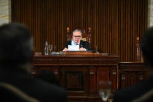 El mandatario señaló que la realidad santiagueña no puede analizarse de manera aislada del escenario que atraviesa el país. “No podemos analizar la realidad de nuestra provincia sin comprender el contexto nacional en la que estamos inmersos”, expresó al inicio de su exposición.