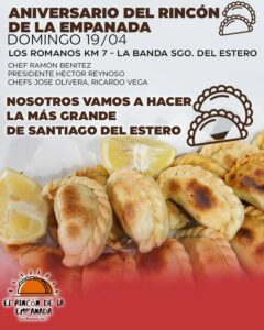Este domingo 19 de abril, La Banda será escenario de una jornada cargada de tradición, identidad y sabores bien santiagueños con motivo del aniversario del Rincón de la Empanada, una propuesta que invita a vecinos y visitantes a celebrar uno de los emblemas de la gastronomía regional.