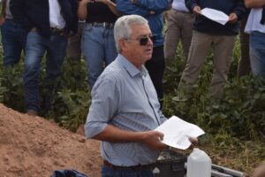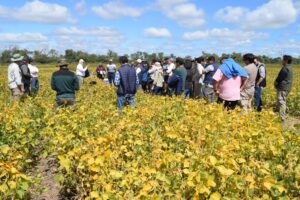 Los participantes se trasladaron luego al establecimiento Don Agustín, donde se realizó una recorrida por el ensayo de los diferentes cultivares. El mismo fue conducido por el Ing. Cristian Gatto de la Empresa Rubro Agropecuario y el técnico Juan de Dios Cáceres, jefe del Campo Experimental de INTA Quimili.